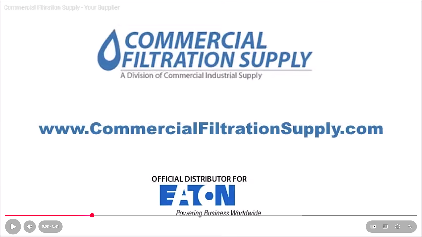 Commercial Filtration Supply is a leading online distributor / supplier of pipeline strainers (Single, Dual, Self-Cleaning, Fabricated, etc.), bag filtration, (housings & bags), cartridge filtration, instrumentation, hydraulic products and replacement parts for leading Brands like Eaton, Titan Flow Control, Hayward, Caleffi, Mueller, NeoLogic, Shelco and more. We cater to commercial and industrial customers around the world, including those who use Eaton's innovative and robust line of filtration products.